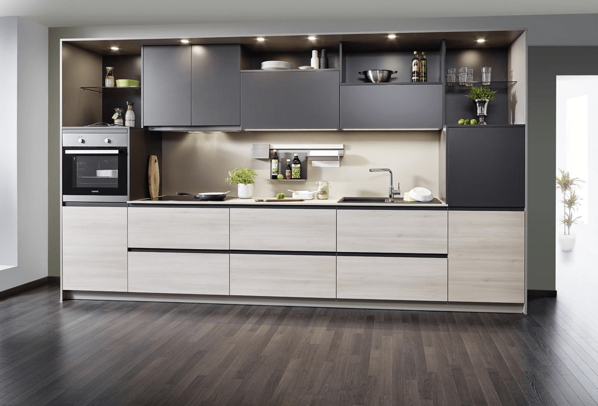 В плане эксплуатации следует учесть и продумать расположение мойки и плиты, грамотно разделить зоны холодильника и духового шкафа.